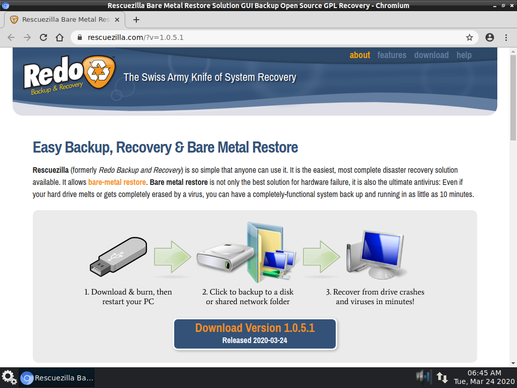 إنه الحل الأسهل والأكثر اكتمالا لاستعادة القدرة على العمل بعد الكوارث. مجربة ومختبرة ، Rescuezilla هو حل موثوق.