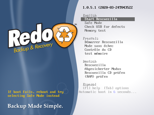Rescuezilla (المعروف سابقًا باسم Redo Backup and Recovery) بسيط للغاية وسهل الاستخدام بحيث يمكن لأي شخص استخدامه.