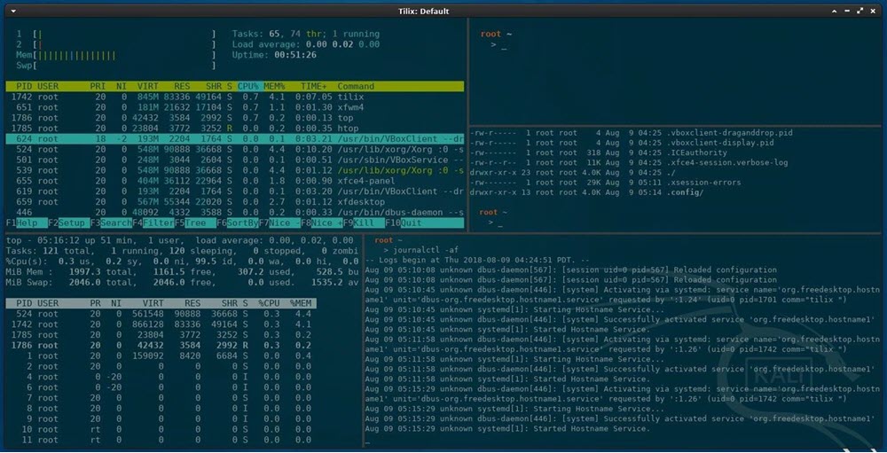 Tilix كما هو موضح في الصورة أعلاه ، هو خيار مفتوح المصدر وموثوق . البدائل تشمل tmux.