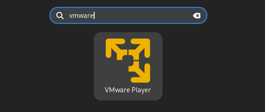 انقر فوق شريط بحث التطبيق واكتب “VMware” في شريط البحث لتشغيل واجهة VMware Workstation على دبيان 12: