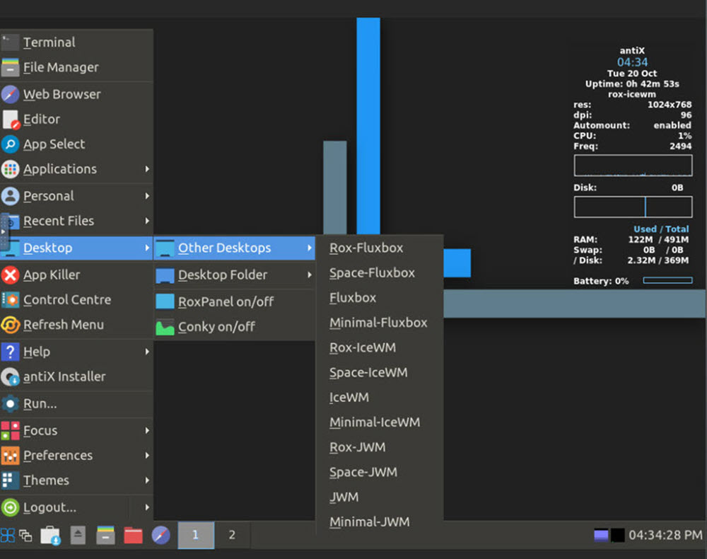 يوفر antiX للمستخدمين “antiX Magic” في بيئة مناسبة لأجهزة الكمبيوتر القديمة.