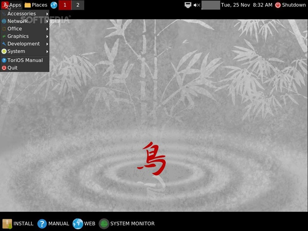 تسعى توزيعة ToriOS جاهداة للحفاظ على مبدأ KISS ويستخدم JWM لتوفير واجهة مستخدم رسومية خفيفة الوزن.