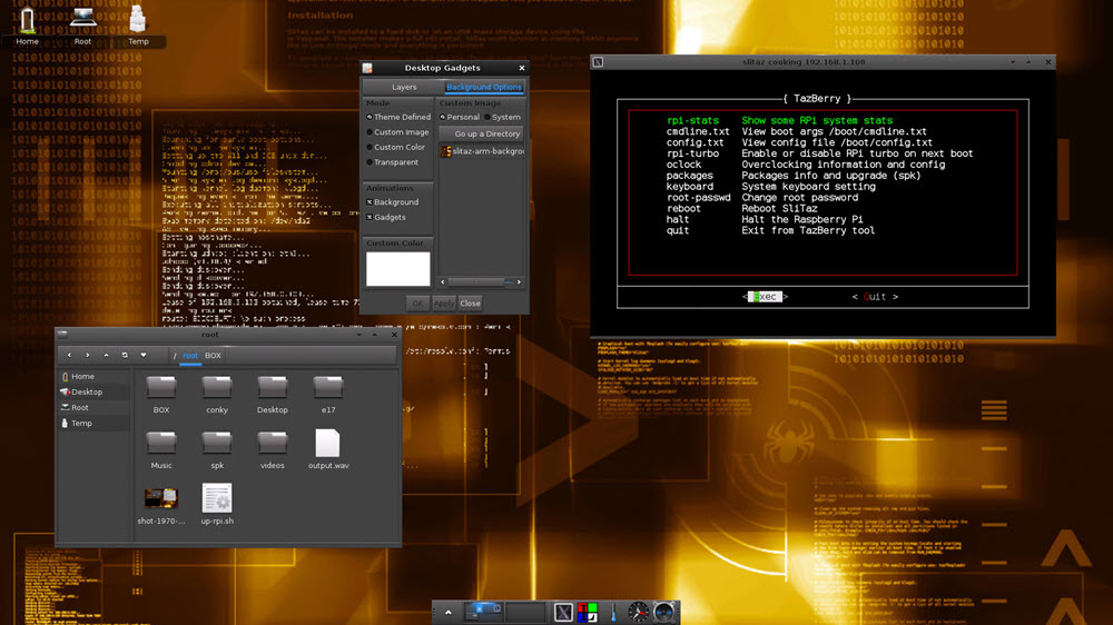 تستخدم التوزيعة Openbox وكما هو معلوم انه خفيف كمدير نوافذ افتراضي وLXPanel كشريط المهام الرئيسي.