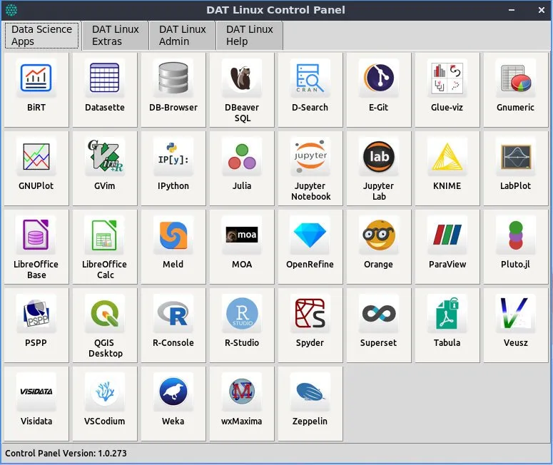 توزيعة DAT Linux هى مبنيه على توزيعة Ubuntu 22.04، لذا فهى تعتبر سهلة التثبيت والاستخدام. وتوفر لوحة تحكم DAT Linux المخصصة مركزًا شاملاً لتشغيل وإدارة العشرات من برامج علوم البيانات.