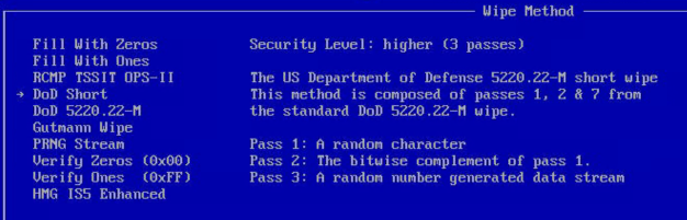 علاوة على ذلك، يوفر ShredOS خيارات متنوعة لطريقة المسح: